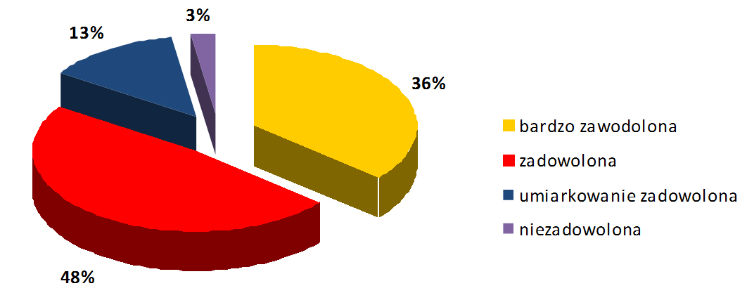 Większość edukowanych kobiet wyraziła zadowolenie ze stosowania doustnej antykoncepcji hormonalnej. Zadowolonych była prawie połowa (48%), bardzo zadowolonych 36% pacjentek, 13% kobiet wyraziło umiarkowane zadowolenie, a jedynie 3% pacjentek wyraziło niezadowolenie z tej metody antykoncepcji.